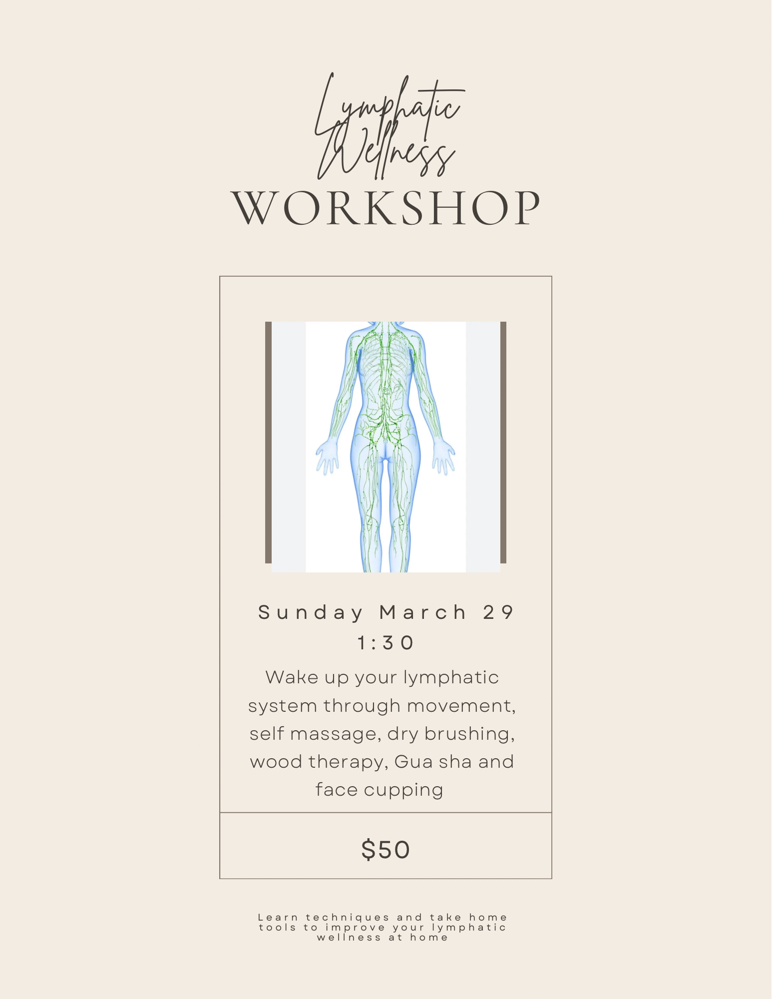This workshop introduces self lymphatic massage techniques designed to support circulation, detoxification, and overall body awareness.
