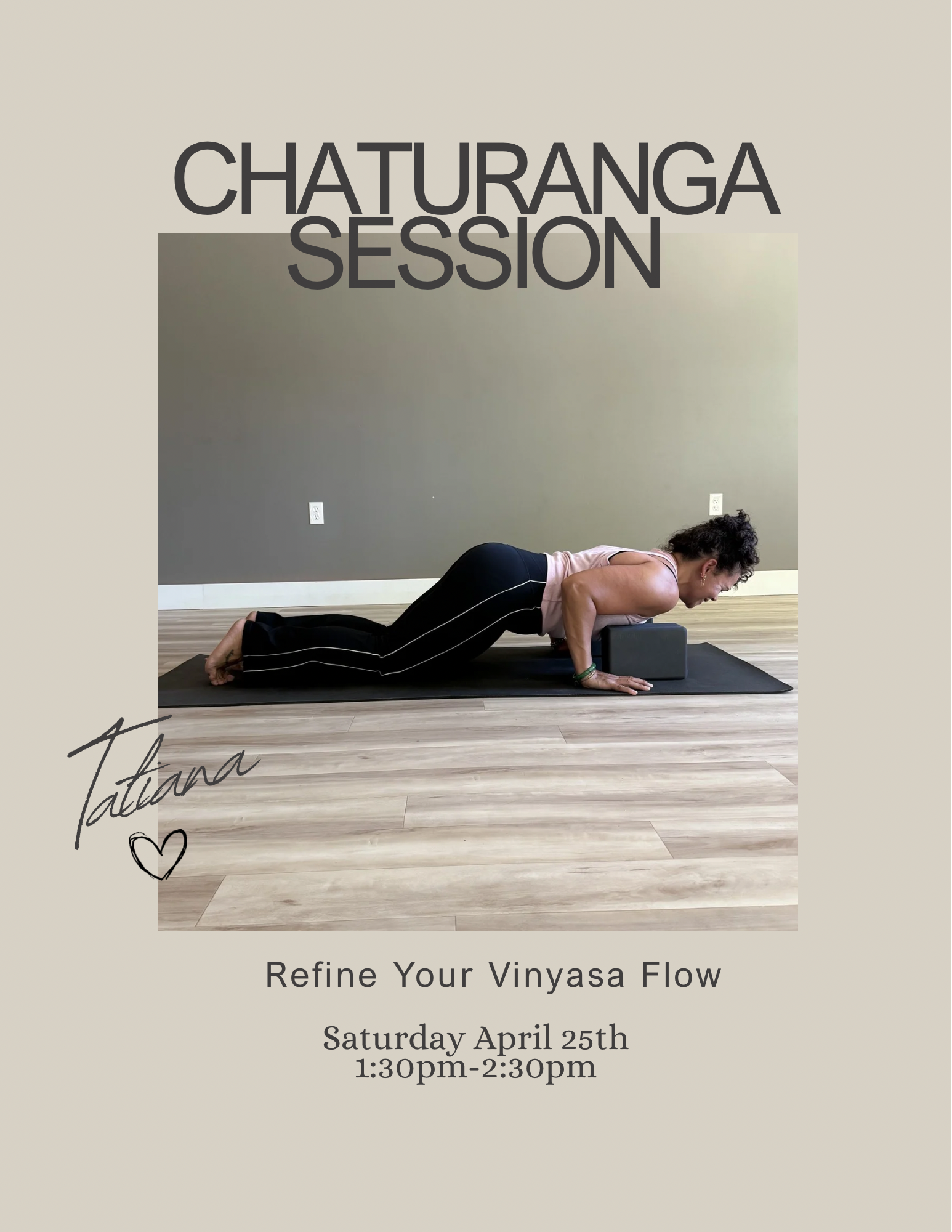 Join us for a focused 1-hour yoga workshop dedicated to one of the most powerful sequences in vinyasa yoga — the classic flow from Chaturanga Dandasana through Upward-Facing Dog and into Downward-Facing Dog.